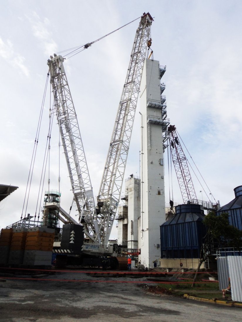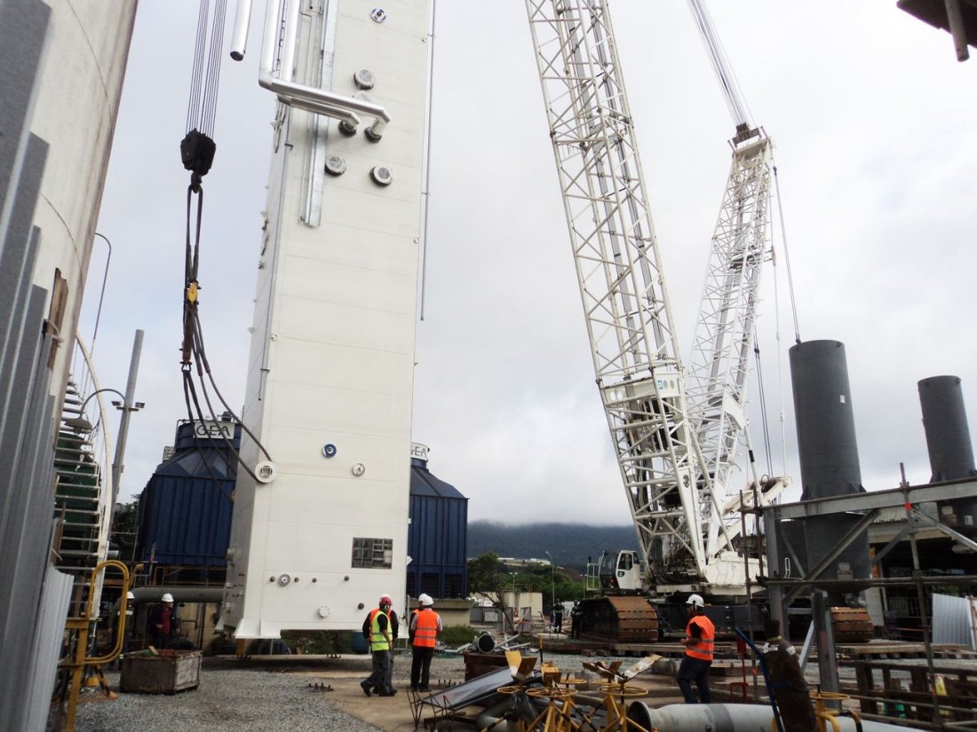 O içamento e colocação na base para a instalação dos equipamentos era considerada uma das etapas críticas do projeto na visão do cliente e do fornecedor que produziu o equipamento projetado especialmente para a fábrica de gases.