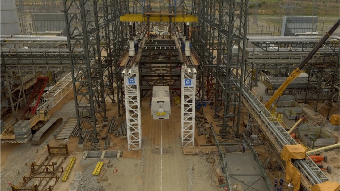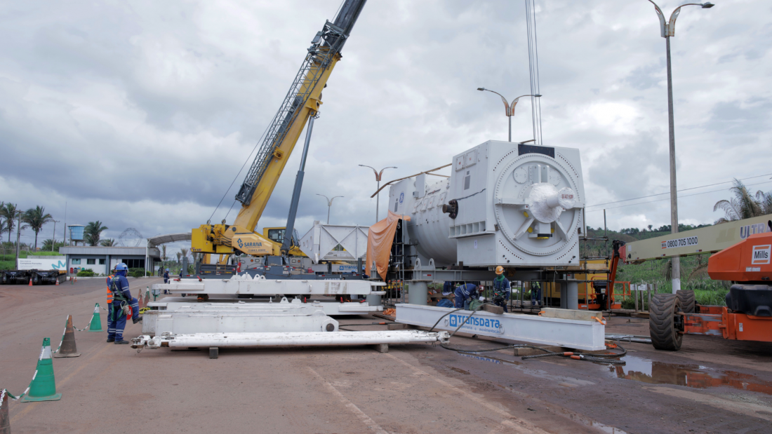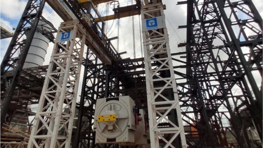 Quando da chegada do gerador no local de instalação, após os testes funcionais, foi realizado o alinhamento e posicionamento do gerador. Durante a elevação, a operação foi assistida por sistemas computadorizados e monitorados pela equipe de engenharia.