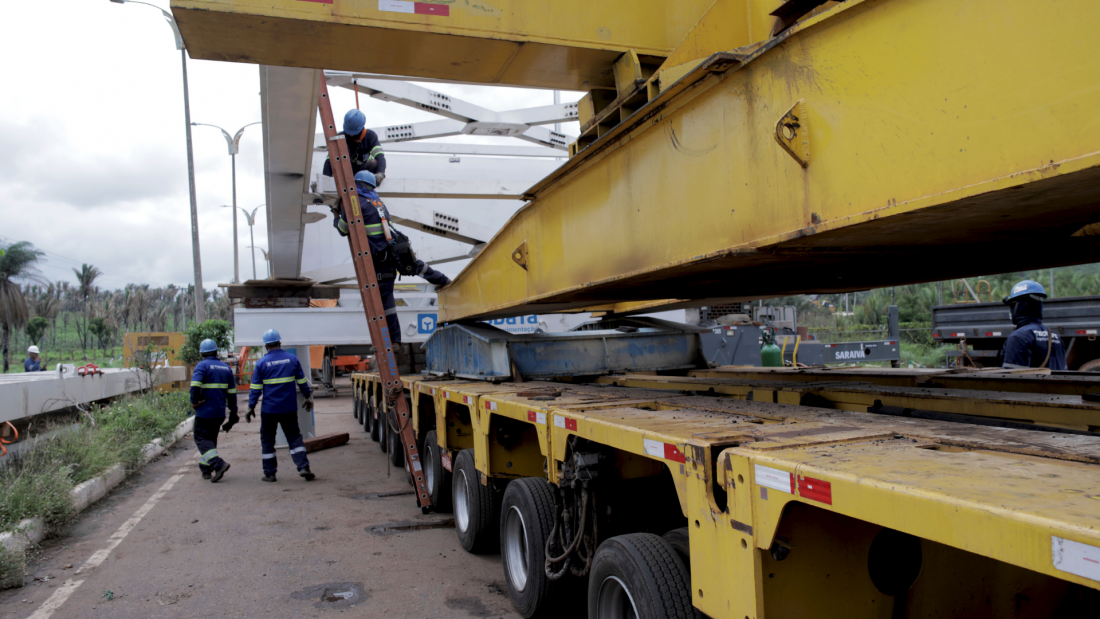 A Transdata aceitou o desafio de performar o maior transporte especial já realizado no Brasil de um Gerador de 359 toneladas para a Termoelétrica Parnaíba V, incluindo o içamento e posicionamento na base. Foram 2300 horas de engenharia, soluções inéditas no mercado, e o mais importante, resultados almejados pelas Partes envolvidas foram atingidos.Na primeira fase, foi realizado o transporte do Gerador de 359 toneladas, com saída do Porto de Itaqui, com destino a Santo Antônio dos Lopes-MA, através de uma solução de engenharia inédita no segmento, a sobreponte metálica modular. Foram 340 km de transporte realizado em conjuntos de 20+20 Linhas de eixos e viga de transporte com capacidade de 400 toneladas, somando o peso total do comboio de 816 toneladas e realizado em tempo recorde de 14 dias.