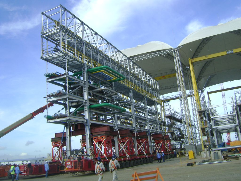 A operação consistiu na utilização de 36 Linhas de Eixo Autopropelidas (SPMT's) para transportar os módulos de pipe rack da área de montagem para o local onde foram instalados. As dimensões dos pipe racks eram de 25 a 40 metros de comprimento, 3 a 9 metros de largura, 21 a 30 metros de altura e 300 a 600 toneladas, percorram sobre as SPMT's cerca de 10 quilômetros em uma velocidade de 01km/hora.