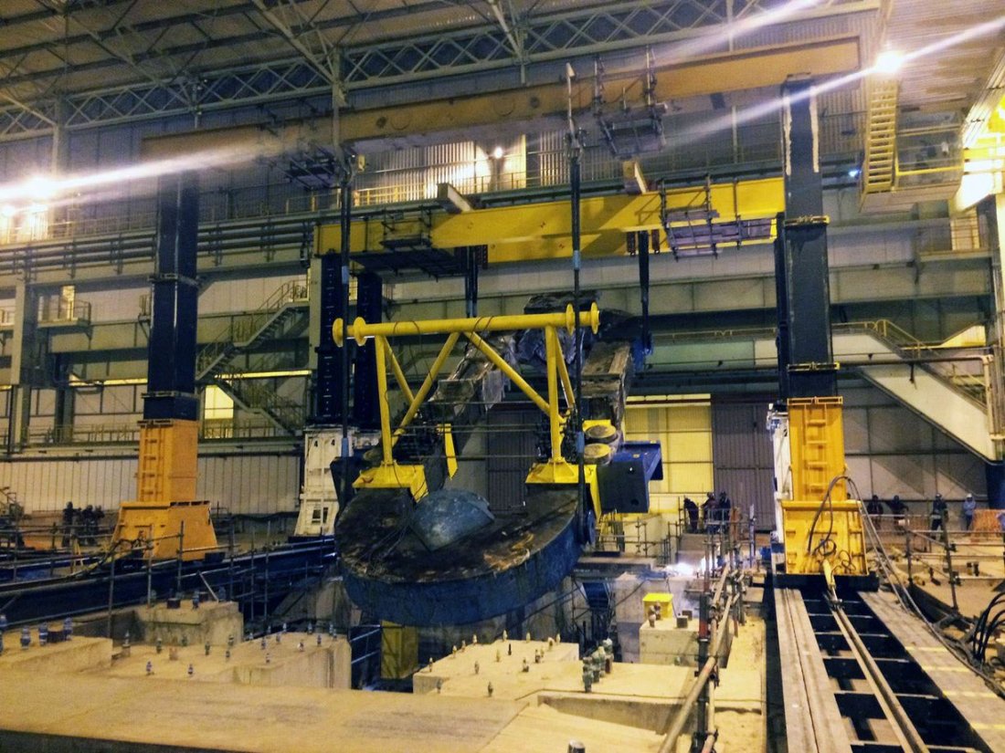 Movimiento interno y verticalización con pórticos para la instalación de plates mill housings.