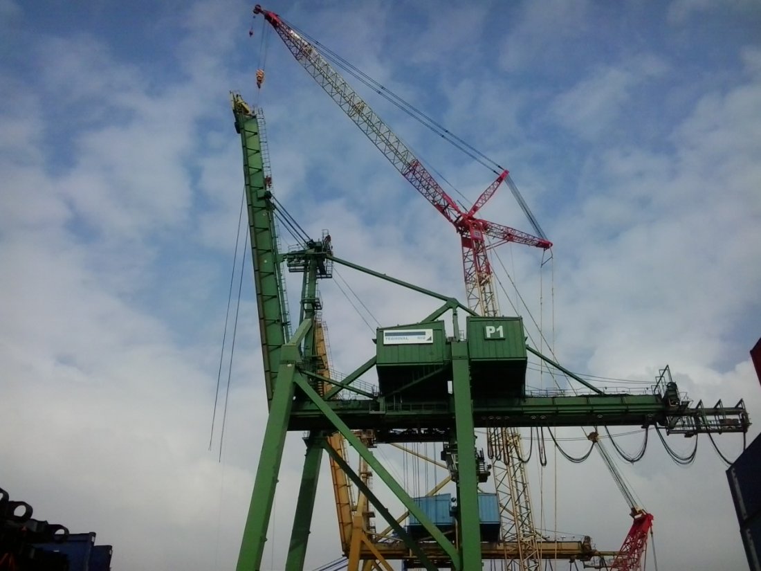 Remoção de guindastes portuários.