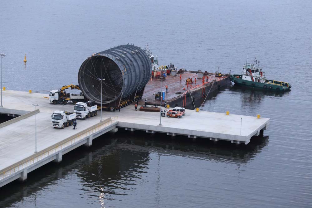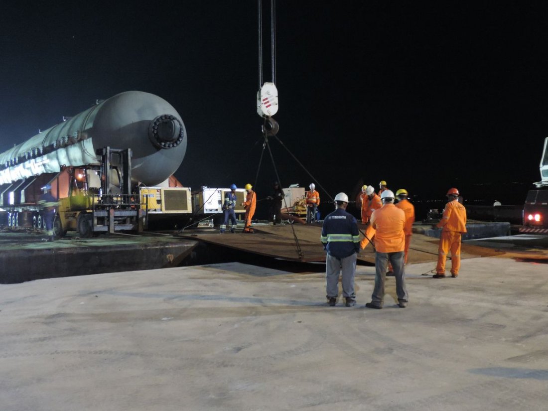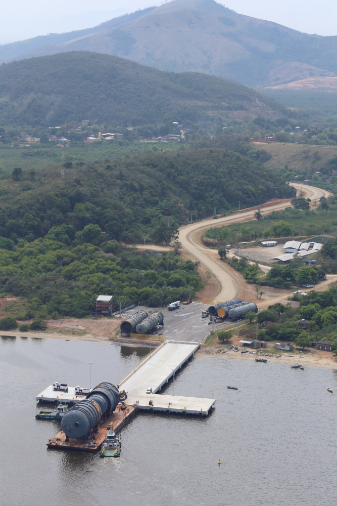 A operação multimodal de movimentação das 24 peças superdimensionadas destinadas ao maior complexo petroquímico brasileiro exigiu uma solução logística diferenciada, após seu transporte marítimo seguiram por 10 quilômetros via terrestre sobre linhas de eixo autopropelidas.