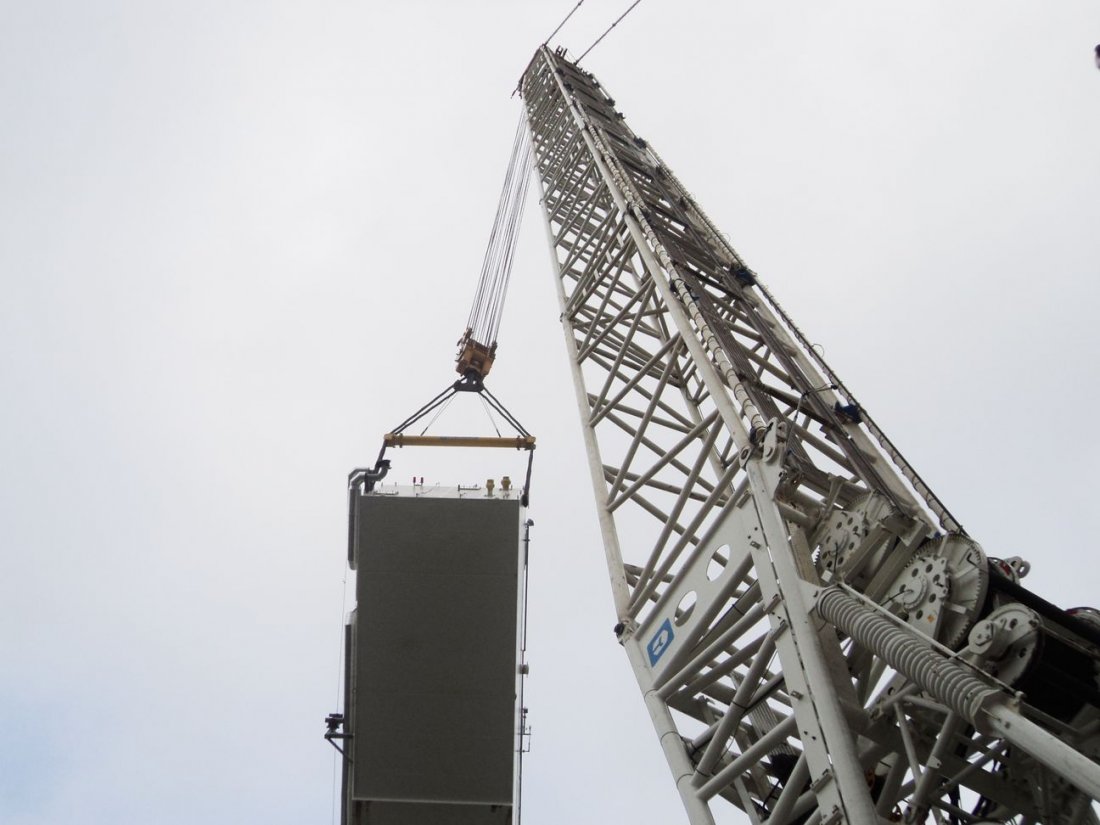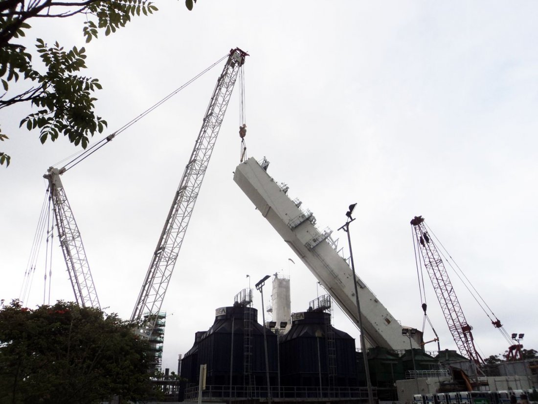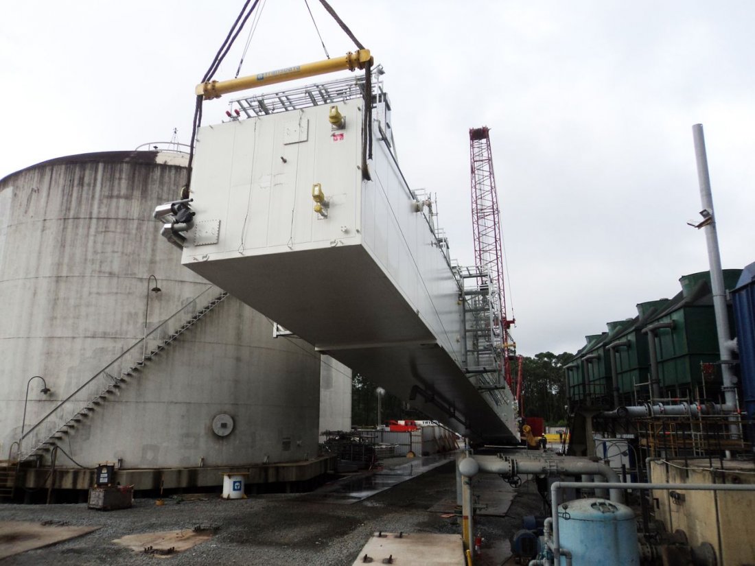 O içamento e colocação na base para a instalação dos equipamentos era considerada uma das etapas críticas do projeto na visão do cliente e do fornecedor que produziu o equipamento projetado especialmente para a fábrica de gases.