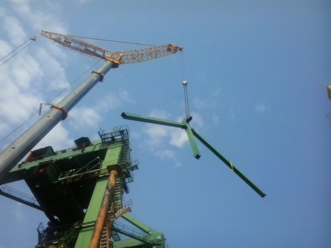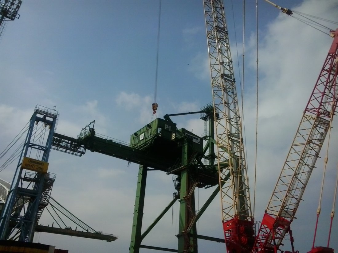 Remoção de guindastes portuários.