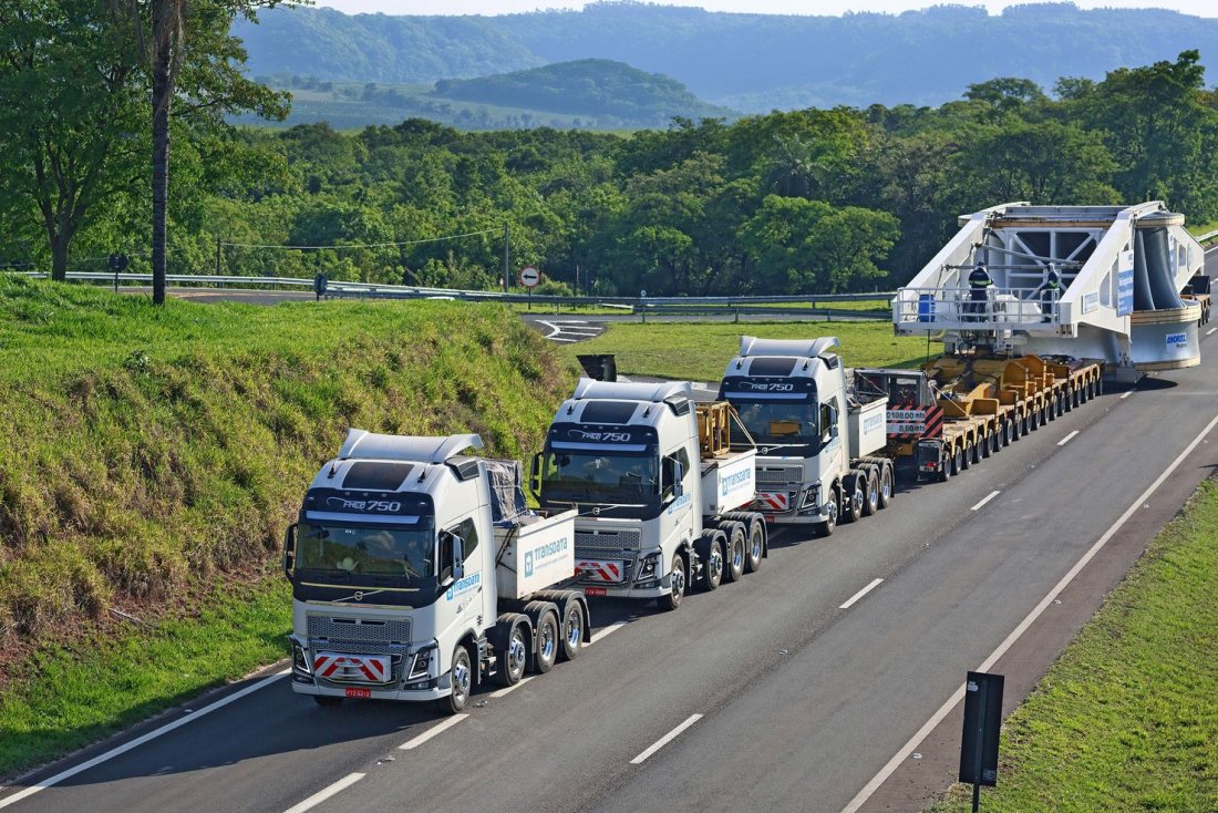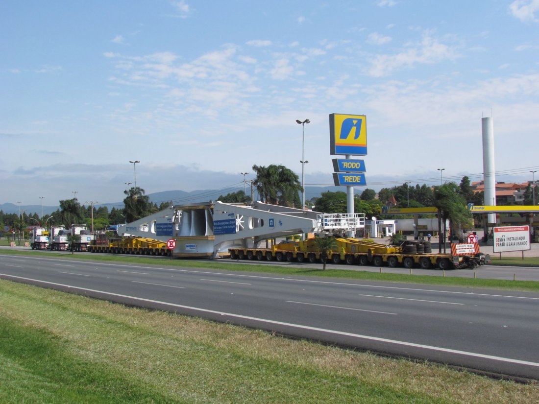 El transporte por carretera de uno de los rotores más grande que se han fabricado en el mundo fue destaque en los canales de noticia, además de impresionar a los usuarios de las carreteras por donde pasó dentro del Estado de São Paulo. El conjunto transportador con una longitud de 108 metros y un peso de 675 toneladas, compuesto por 3 cabezas tractoras de 750 cv, 02 conjuntos de 18 líneas de eje y la viga transportadora diseñada especialmente para la operación, su presencia no pasó desapercibida. Uno de los rotores más grande que se han fabricado en el mundo, con un peso de 316 toneladas y con casi 9 metros de longitud por 5 metros de altura, salió de Araraquara (SP) y se entregó en el Puerto de Santos (SP), para partir de allí hasta la Cuenca del Río Xingu.