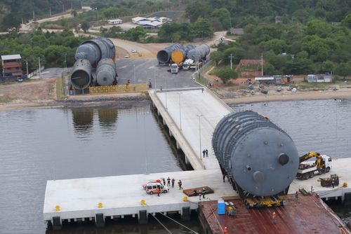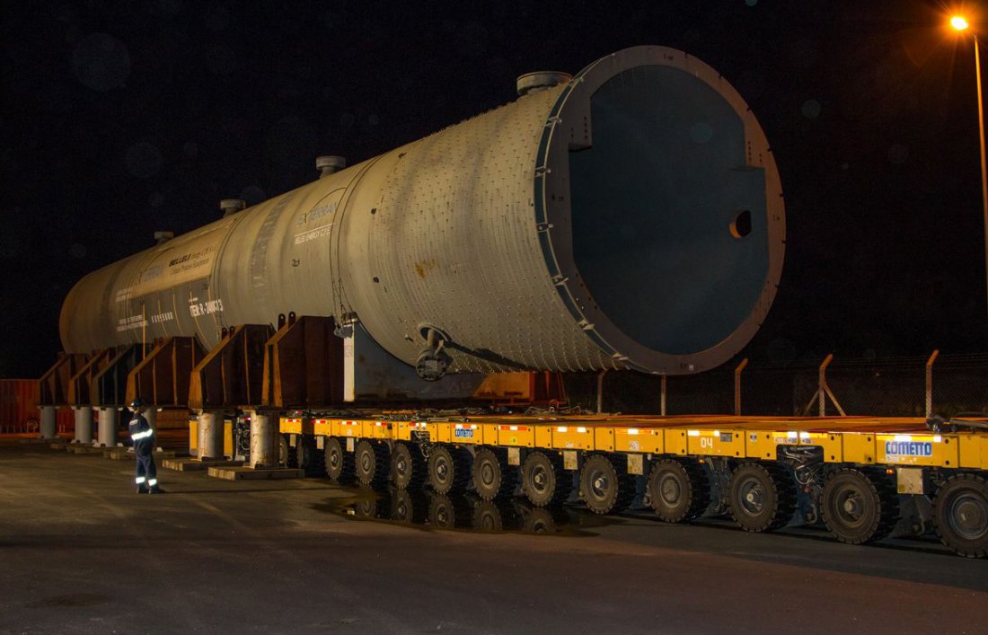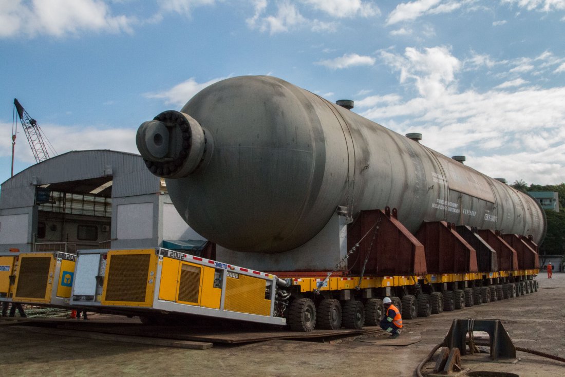 A operação multimodal de movimentação das 24 peças superdimensionadas destinadas ao maior complexo petroquímico brasileiro exigiu uma solução logística diferenciada, após seu transporte marítimo seguiram por 10 quilômetros via terrestre sobre linhas de eixo autopropelidas.